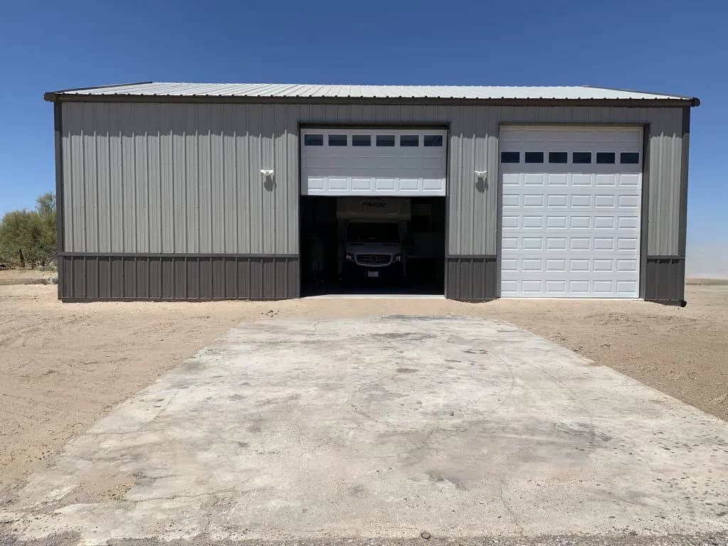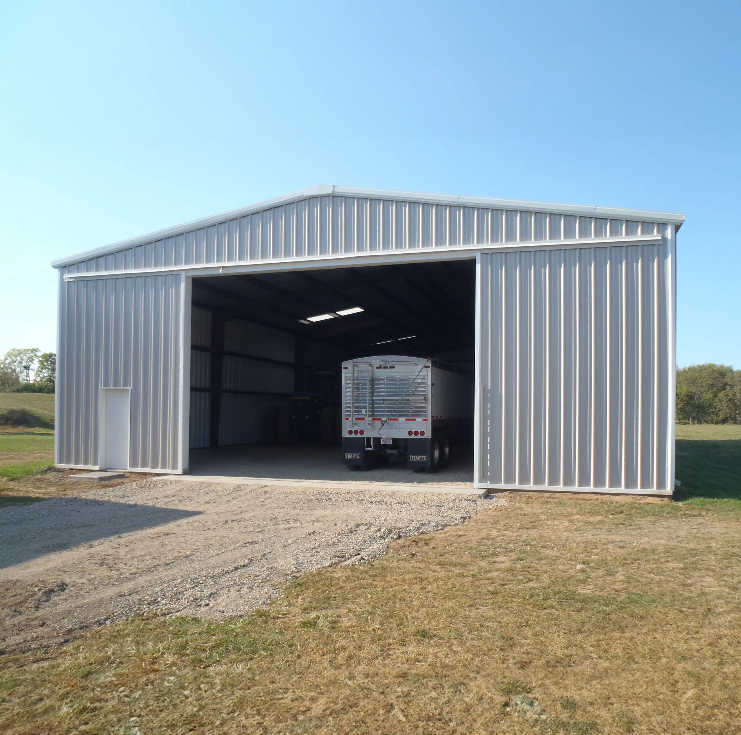 Pre-engineered metal buildings designed for storing tractors, tools, feed, hay, and large farm equipment.