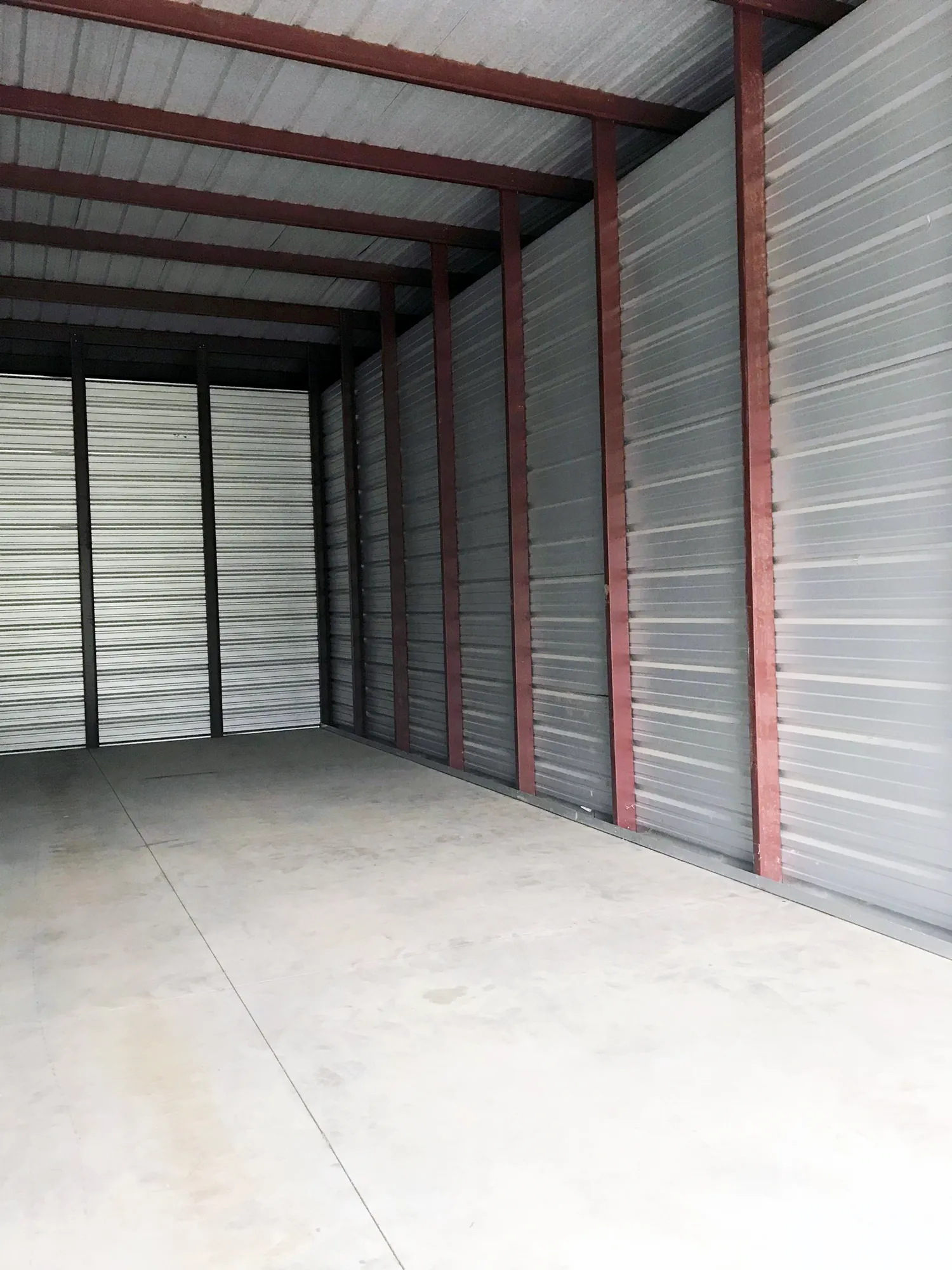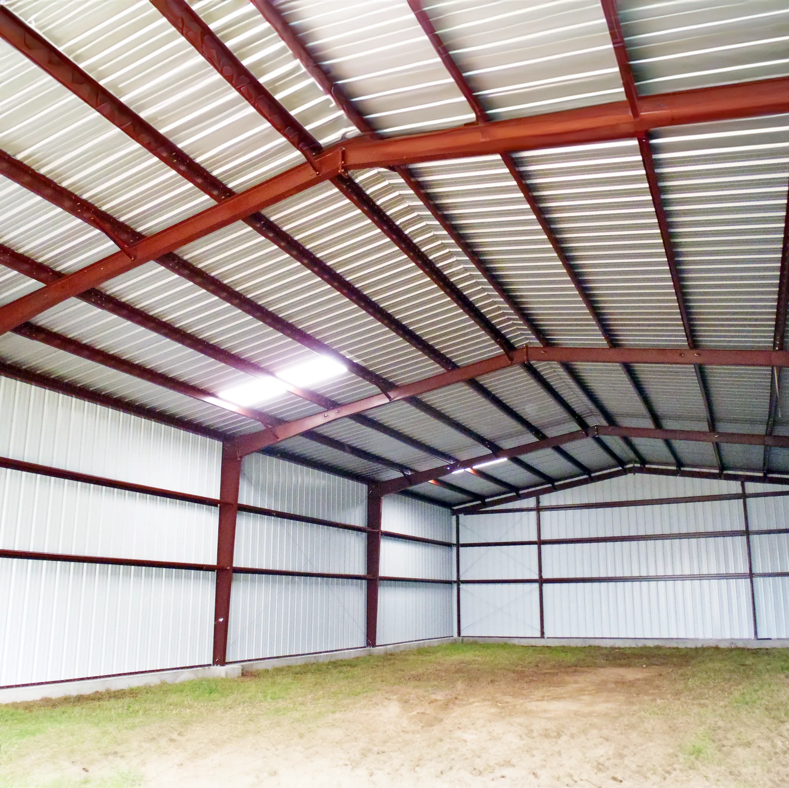 The gable end of the building (endwall). We design buildings from 20′ wide up to 200′ clear span, or 600′ wide with interior columns.
